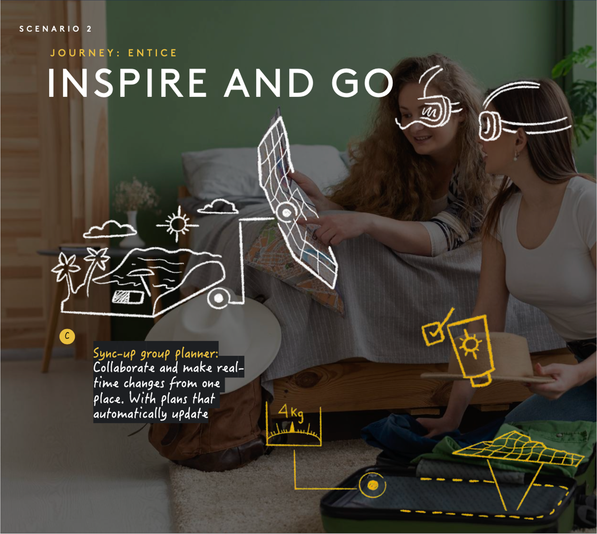 Leaning on the world building exercises and workshop conducted with the client, multiple scenarios on different phases of the travel journey were developed to ideate and create concepts.