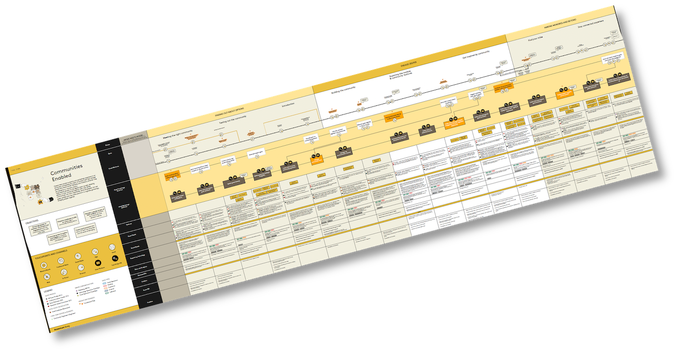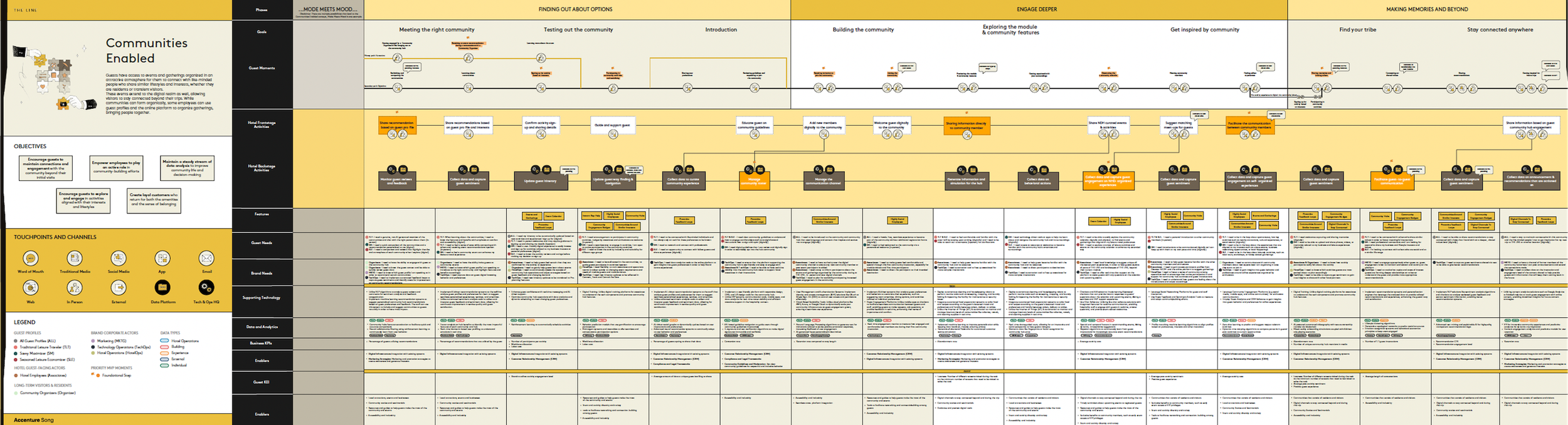 We created a guest journey for each visitor profile, and they corresponded to the various layers of the journey phases and needs. The journey follows a story telling centered approach that included concept mapping to profile mapping.