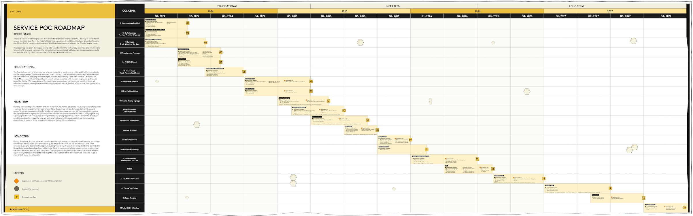 The long list of services includes description, benefits, enablers and technology considerations for the future experience concepts. 6 concepts were prioritized for further detail.